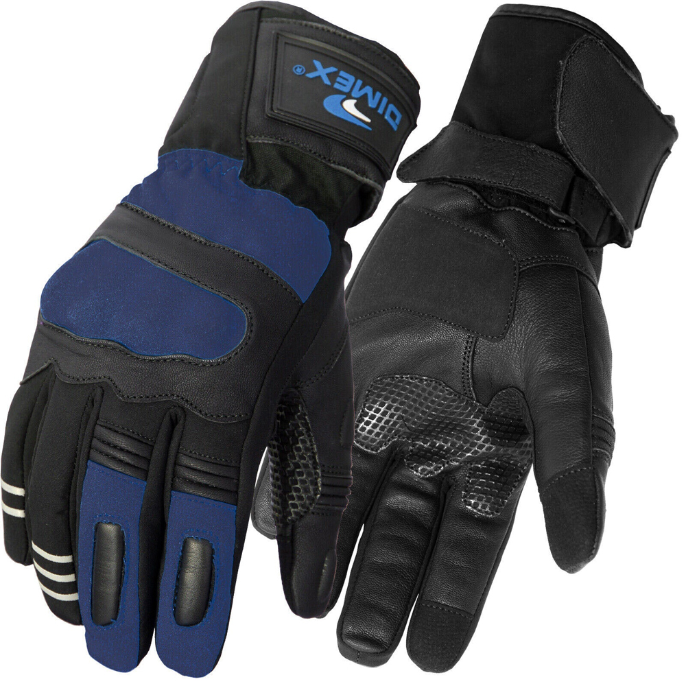 • Motorcycle Gloves Leather Knuckle Thermal Protection Touch Screen Dark Blue